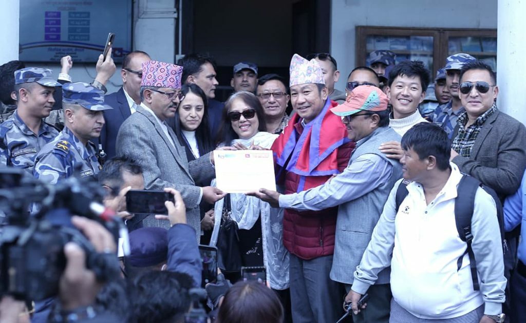 गत असोज १२ गते आइतबार साम्पाङ आफैं निर्वाचन आयोग उपस्थित भएर दल दर्ताको निवेदन दिएका थिए ।