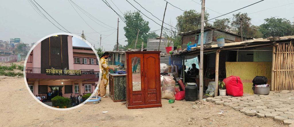 काठमाडौँ । बैशाख ११, काठमाडौं उपत्यकाको नदी किनारामा बसोबास गरिरहेका सुकुमवासीहरूलाई हठात रुपमा हटाउने सरकारको निर्देशन कार्यान्वयन नगर्न माग गर्दै जेनजी अधिकारकर्मीहरू एवं कानून व्यवसायी सर्वोच्च अदालत पुगेका छन् ।